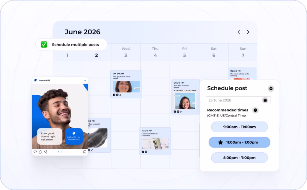 The Social 99 is a month-to-month service. You can cancel anytime before the next billing cycle with no long-term commitment.